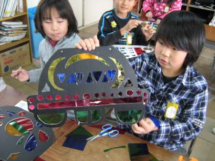 はじめてのカッター・・・どきどきでしたが、使うにつれて、どんどん上手になっていきました。