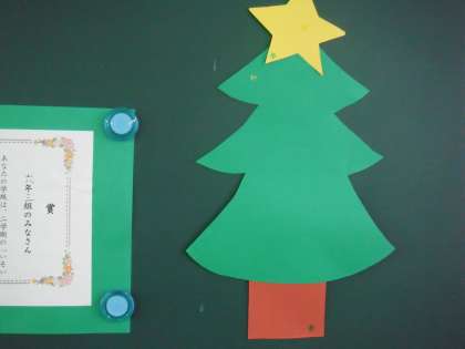 今日から、総務委員会による感謝運動が始まりました。帰りの会で友達への「ありがとう」を発表し、その数だけ、クリスマスツリーにシールをはります。