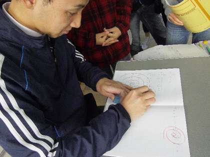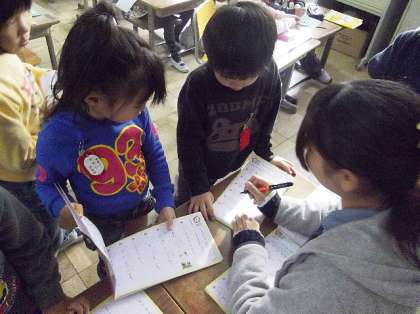 先生に見せに行く。「まる」をいただく。