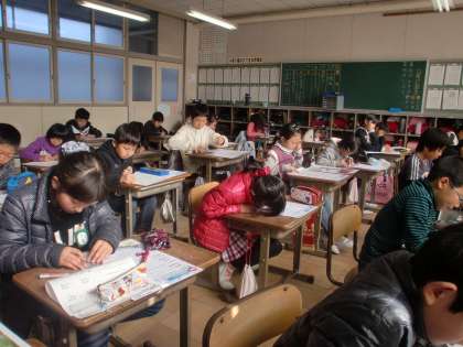 テストが配られると一斉に真剣に取り組み始めました。教室には鉛筆の音が響きました。しかし、久しぶりにやる単元もあったからか、「う〜ん。」と悩む様子も見られました。