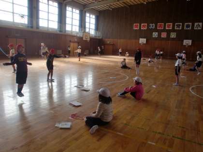 また、4年生は学年なわとび大会で、前回し跳び1分30秒・後ろ回し跳び1分の継続跳びにチャレンジするので、時間を計ってやってみました。「まだなの?」「1分30秒って意外と長いよ。」という声も聞こえてきましたが、数名ずつクリアできた子がいました。一方で「あっ!!」と予想外に引っかかってしまった子もいたようで、悔しい顔も見られました。