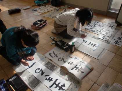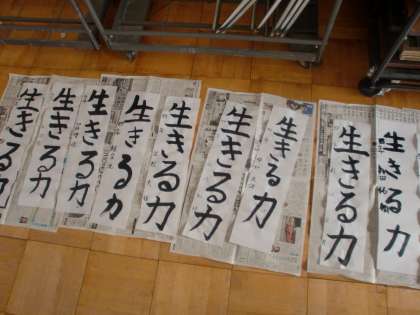 4年生は「生きる力」を書き初めしました。研修室に新聞紙を広げ、お手本をじっくり見て、書きました。本番の書き初め用半紙は一人3枚しかありません。1枚1枚丁寧に書いたことと思います。「結構うまくかけたよ。」「緊張した。」と言いながらも、どの子も、力強く書けていました。