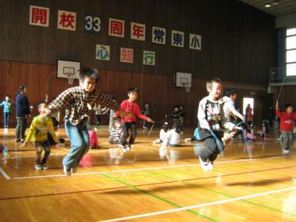 短なわとびでは、自分が失敗しても、残っている友達を一生懸命応援している子どもたちの姿が印象的でした。