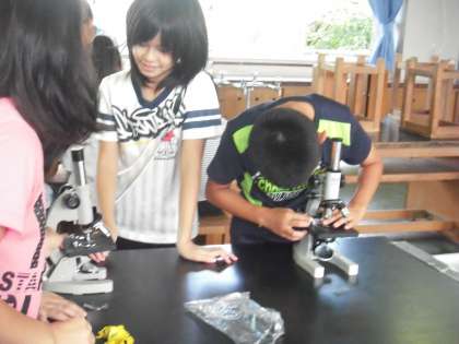 理科「花から実へ」の学習で、おしべの先についた花粉の観察をしました。校庭で数種類の花を集め、花によって形・色・大きさが違うことがよく分かりました。顕微鏡の扱いにもずいぶん慣れてきた様子です。