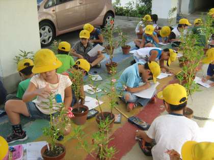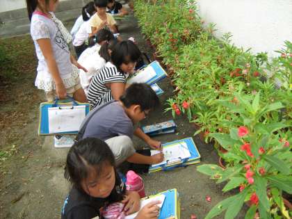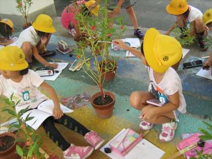 1学期から育てているホウセンカの観察をしました。夏休みの間に草丈が60cmにも伸びたホウセンカもありました。葉の数を数えると100枚以上あって,苦労しながら数えました。たくさんの実をつけ,手で触ると殻が割れて黒い種が出てきます。一人3粒ずつまいた種からたくさんの種の収穫ができています。来年の西小と東小の三年生に届けたいと頑張って集めています。