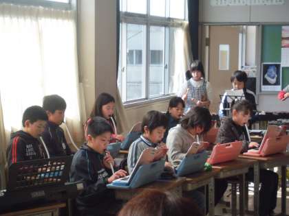 2分弱の短い合奏ですが、初めて扱う楽器があったり、細かいリズムがあったりと簡単ではありません。テンポの合いにくい部分は何度も繰り返し、お互いの音を聴き合い、息を合わせる練習をしました。