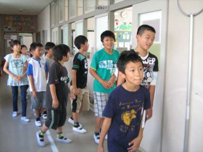 朝、校内では、あいさつ隊のみなさんが「おはようございます。」と