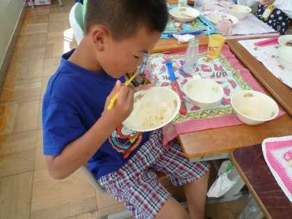 上手に身がとれた子もいれば、魚をつついただけの子もいました。