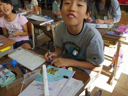 4年生は、新しい理科の教材の部品一つ一つに名前を書いています