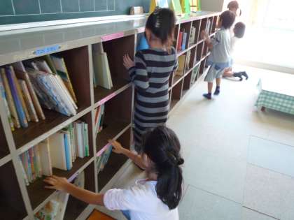 今日の昼放課は、図書ボランティアがありました。図書ボランティアは、クラスで選ばれた有志によるものです。やることは、いつも使っているメルヘンルームの本の整理整頓をします。