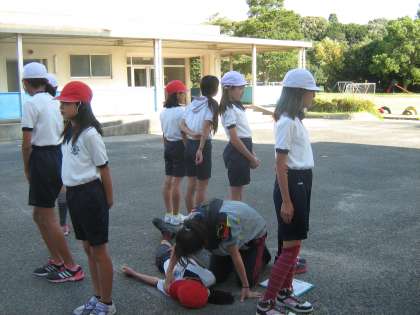 児童も職員も真剣に訓練をしました。