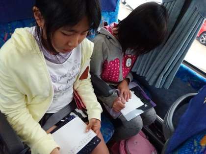 見たこと、聞いたことを覚え、戻ってきたバスの中で即メモ!さすがです。