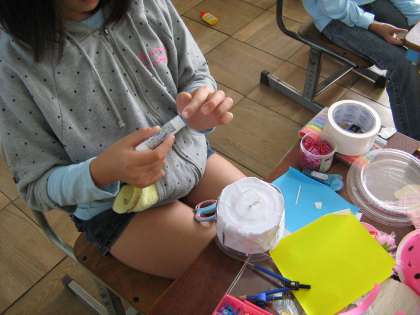 先週の公開日の図工の続きをしました。折り紙で飾り付けをしました。かわいらしいおもちゃが完成しました。