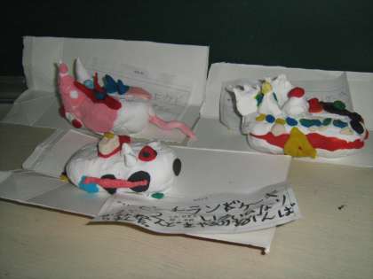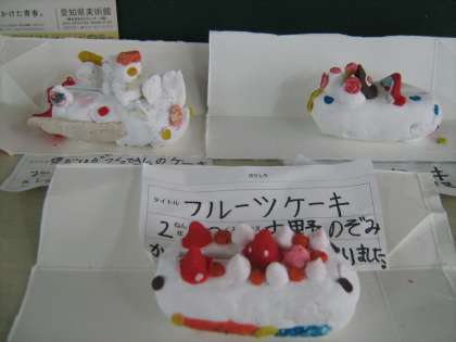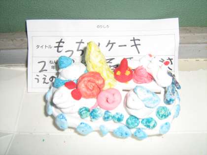 紙粘土で自分だけのケーキを作りました!おいしそうで、すてきなケーキができあがり。色の粘土は混ぜると様々な色が作れました。トッピングも楽しいな。お一ついかがですか。