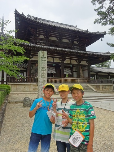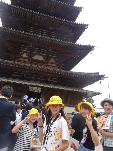 歴史の旅、最後を締めくくるのは、法隆寺です。ガイドさんのお話を一生懸命聞き、メモをしました。この2日間で、しおりの中は、見知ったことでぎっしり!です。