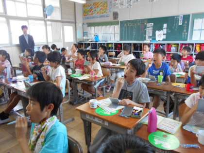 学童歯みがき大会 学校歯科医 藤井先生 甘粕先生も参加していただきました