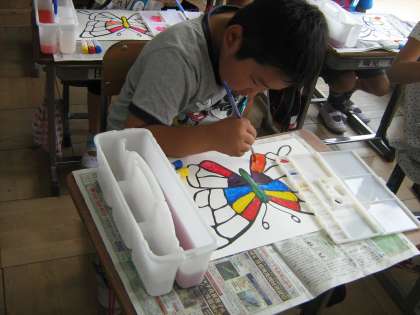 絵の具セットを使っての授業は2回目。