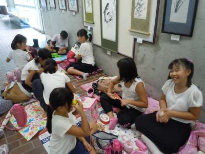 4年生の子どもたちは、午前中に学校を出て、文化会館へと歩きました。先に弁当を食べて、いざ本番へ。ピクニック気分でウキウキ。