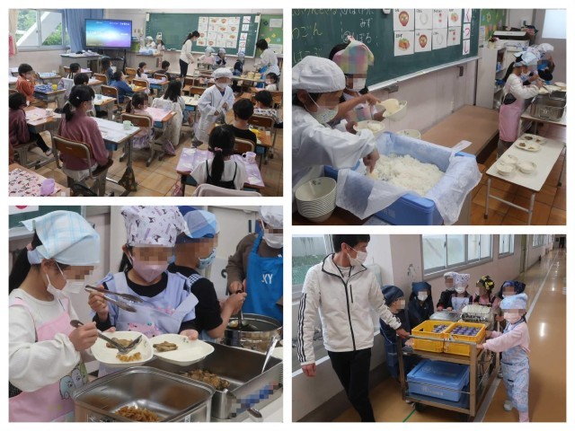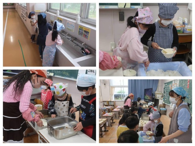 給食当番も頑張っていました。明日からも、よろしくお願いします。