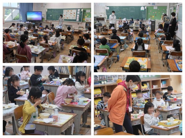 1年生 初めての給食でした。小学校の給食はどうですか?
