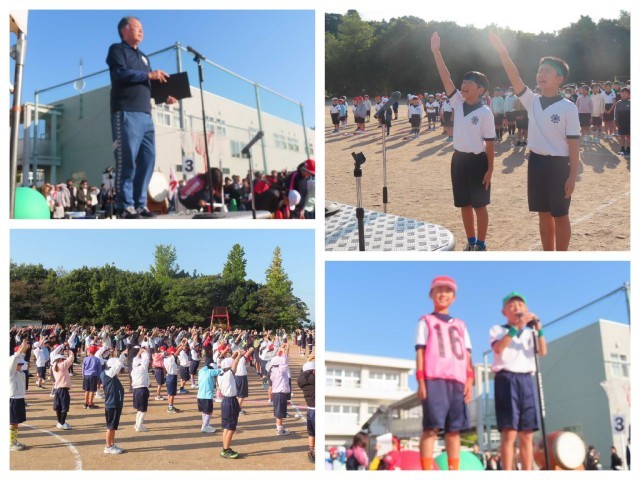 お天気に恵まれ、予定通り運動会を行うことができました。たくさんのご来賓や、保護者の方に来ていただき、子どものがんばる姿を見ていただけたこと、大変感謝いたします。昨日、遅くまで黒板に思いを込めている先生もいました。朝早くから、テントや器具の準備をしてくれる先生もいました。お手伝いをしてくださったPTAの方も多くいます。こうした様々な人のおかげで、大きなけがもなく、無事に終えられたのだと思います。感謝いたします。なお、閉会式がライブ配信できませんでしたので、校長が話した内容について以下に掲載します。児童代表のお話や運動会の競技・演技の写真については、また後日に公開する予定です。