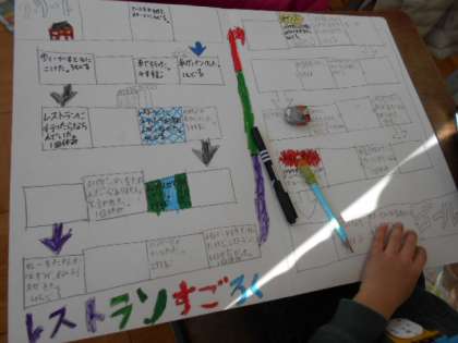 楽しそうにすごろくを作っています。お正月に家族で楽しんでね。