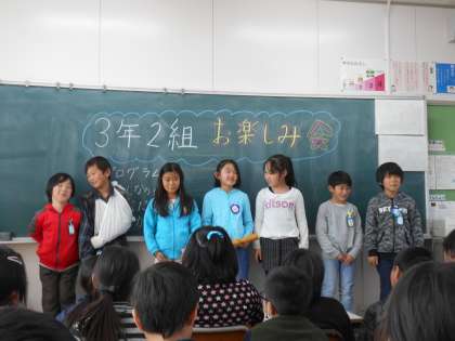 3年生の5時間目は、あたたかーい雰囲気で、どの学級も交流会。この1年でみんな仲良しになったね。