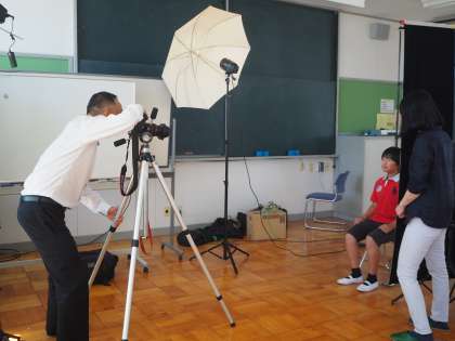 卒業アルバムの撮影が行われています。
