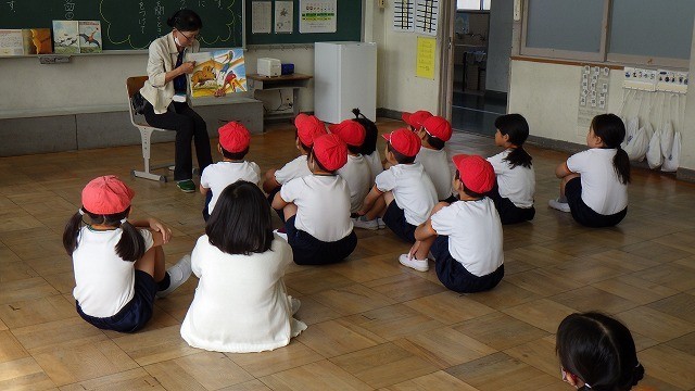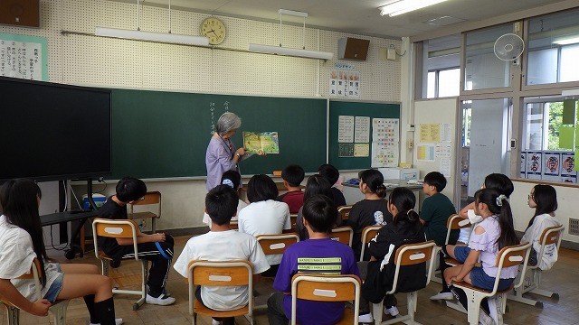 1年生には「とんぼのうんどうかい」、2年生には「リトルホーンと巨大恐竜」「まどのむこうのくだものなあに」、3年生には「からすのパンやさん」、4年生には「くらげのパポちゃん」、5年生には「命はどうしてたいせつなの」、6年生には「おおきいちいさい」「ぼうさい」「ふたり」「しぜんとかがくのはっけん366クイズ」を読み聞かせていただきました。2年生の「くだもの」の本では「ザクロ」が出てきますが、子どもたちは「ザクロ」が分からなかったということでした。本は世界を広げてくれますね。「くらげのパポちゃん」を調べると、かこさとしさんの幻の遺作で今年の2月に刊行された本でした。戦争をテーマにした本。購入をして子どもたちが手に取って読んでほしいです。
