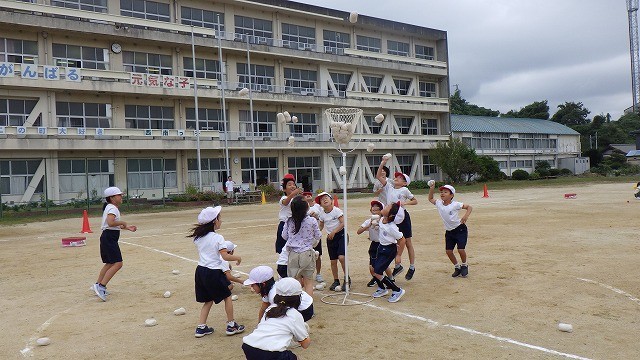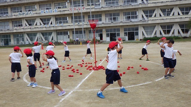 曲に乗ってダンスをし、玉入れを行います。手足をしっかり伸ばし、キラキラスターになっていました。