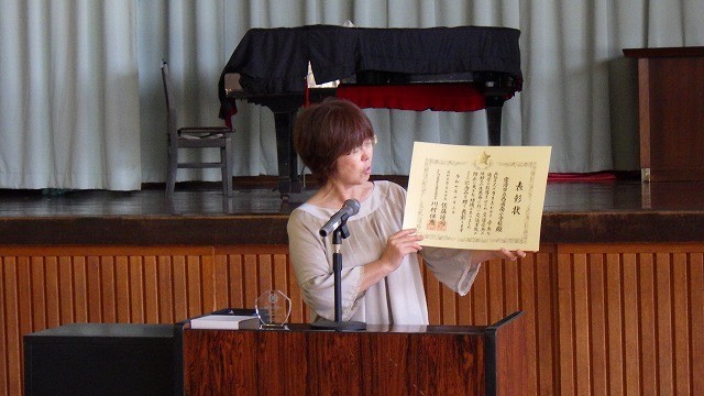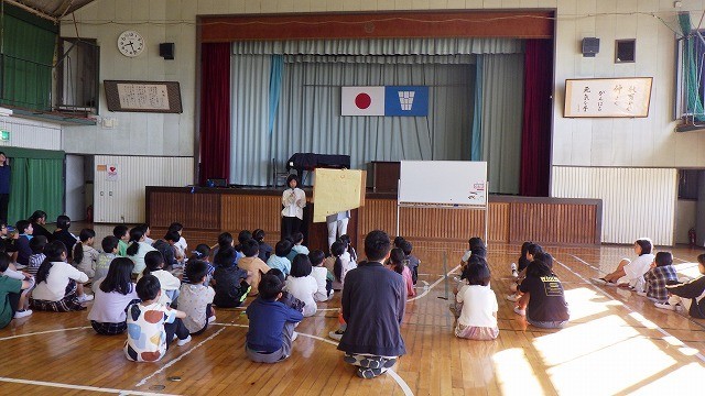 先週、「交通安全優良校」として表彰されたことを子どもたちに紹介しました。校務の先生からウサギとタブレットの使い方について話がありました。
