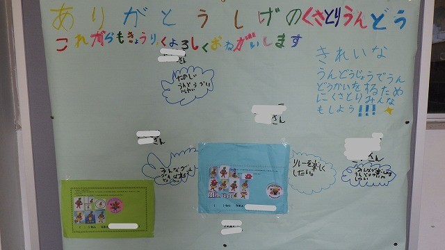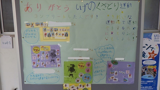 20本の草を抜くとシールが1枚、20枚でコンプリート。計400本の草取りをしたことになります。今年の運動場がきれいなのは、草取りをしてくれたおかげです。ありがとうございます。