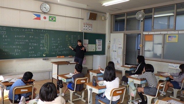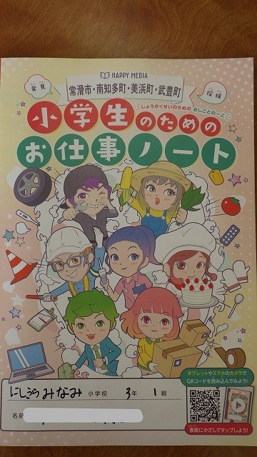 テキストを使って「どんな仕事があるかな」から「将来の仕事」や「仕事の選び方」について話をしていました。テキストには、常滑市や企業の紹介のページがあり、子どもたちは身近な会社を見つけて喜んでいました。授業後には、家族の仕事の大変さを労る言葉が出ており、しっかり「親の背中を見ている」と感じました。