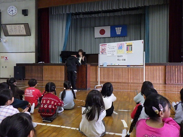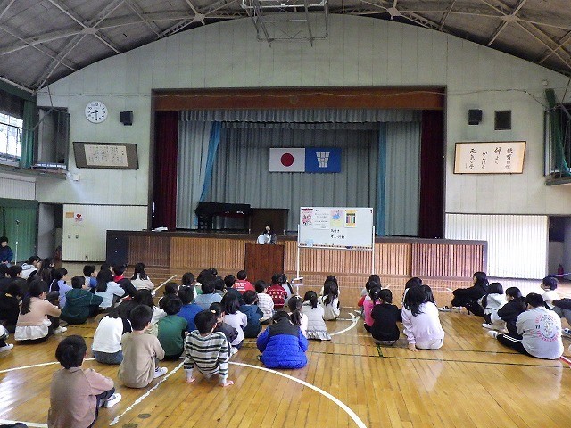 校長講話では、11月15日~26日まで100周年の記念すべき「デフリンピック」が、日本で初めて東京で開催されたことと、人権について話をしました。校外で活躍した児童の表彰披露もしました。12月の目標の発表もありました。