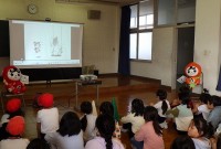 1年生には「ぼくはあるいた まっすぐ」「まんげつのよるのやくそく」、2年生には「あおいめ くろいめちゃいろのめ」「きたかぜとたいよう」、3年生には「さつまいももちやけたかな」「こねこねねこのねこうどん」「100人のサンタクロースの12かげつ」「やきやきてっぱん」、5年生には「なめとこ山のくま」「6年生には「柿やまぶし」「アンパンマンとばいきんまん」「まどからおくりもの」を読み聞かせしていただきました。熊問題が深刻な今、共存について考えていくきっかけになればと選んでいただき、ありがとうございました。