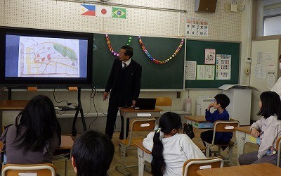 学校運営協議会でお世話になっている苅屋地区お住まいの方からお話をお聞きしました。昔、中学校のあった場所、西浦役場のあった場所、たくさんの写真を見せながら子どもたちに分かりやすく話していただきました。体育の時間に海で泳いでいたこと、堤防ができた理由など、この地区に住み、愛着心が育つお話でした。江戸時代の地図の見方など、子どもたちの興味が高まっていました。ありがとうございました。