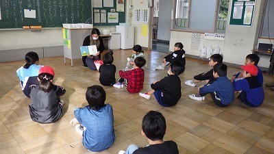 1年生には「こんなこいるかな」「ニュースで筋トレことば」、2年生には「ぼめちゃん」「とらのセーター」「なぞなぞはじまるよ2」、3年生には「どんぐりたろうのき」「ゆずちゃん」、4年生には「おおかみだあ」「プラスチックのうみ」を読み聞かせしていただきました。読み聞かせのの前に本を選んた理由を聞くのも読み聞かせの魅力の一つです。「おおかみだあ」を訳したのは、常滑市ゆかりの谷川俊太郎、「プラスチックのうみ」を訳したのは、当時小学5年生の男の子。子どもたちに身近に感じてほしい、読み手の願いが詰まった時間です。ありがとうございました。