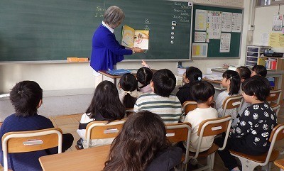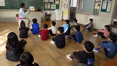 1年生には「どきどきしてる」「さかなはさかな」、2年生には「ボールのまじゅつしウィリー」、3年生には「ニュースで筋トレことば」、4年生には「しげちゃん」を読み聞かせしていただきました。「始める前からキラキラする瞳で待っててくれるからうれしいです」と応援団の方が話してくれました。お話を聞く姿勢がばっちりできていますね。ありがとうございました。