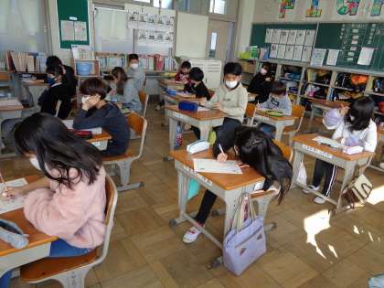 4年生は、感謝の会に向けて、今年1年お世話になった交通指導員さんや駐在さん、子どもを守る会の方々に、手紙を書きました。