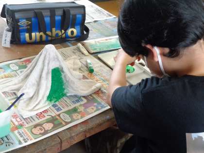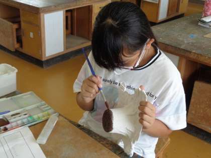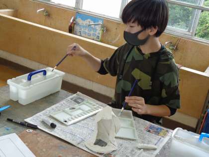 前回の図工の授業で、布を液体粘土で固めて型をつくりました。