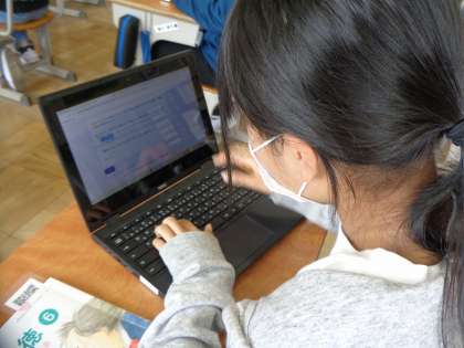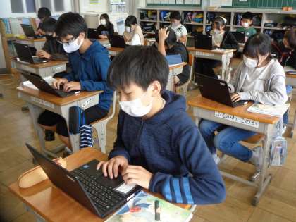 道徳の時間に6年生の教室を訪れると、子どもたちがタブレットに向かって打ち込みをしていました。