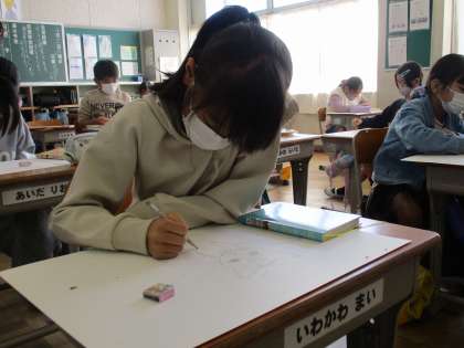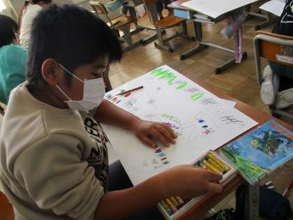 4年生は図工の授業で、読書感想画の制作に取り組んでいました。