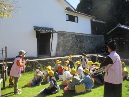 登り窯、土管坂、瀧田家の3箇所を、ボランティアガイドの方に説明いただき見学をしました。ガイドの方が絵や図を使って分かりやすく説明くださり、説明いただいた実物を自分の目で見ることで、子ども達は詳しく学ぶことができました。