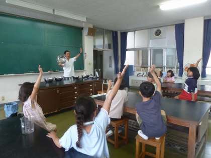 1Lの水が入れ物にどれだけ入るか予想してから水を入れ、量感を感じとっていました。家にある鍋には、どのくらいの水が入るかな。