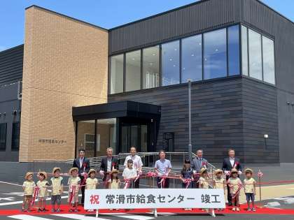 新給食センター竣工式テープカットに本校6年生児童が代表で参加しました。