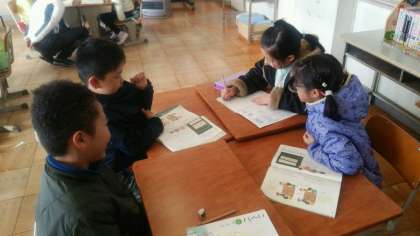 司会をする係、メモをする係も決め、活発に意見を言います。