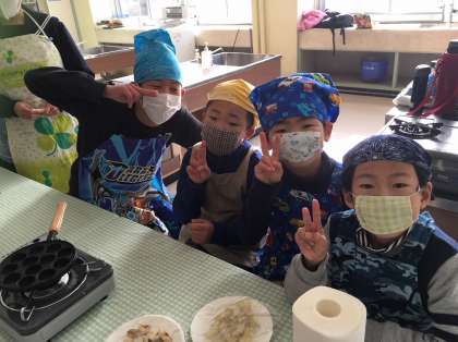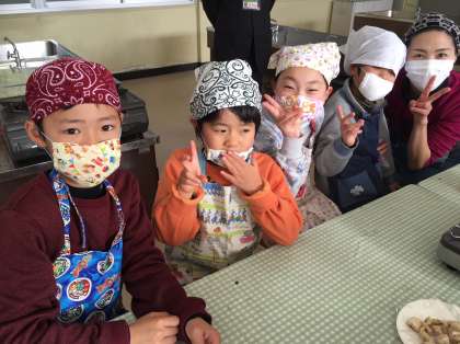 なかよし学級のみんなは、南陵中学校に交流会に参加しています。まずは自己紹介をして、みんなでお菓子作りです。