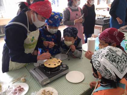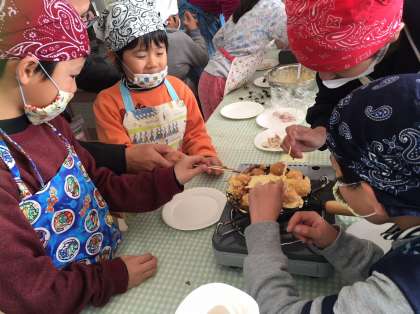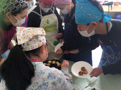 南陵中学校のお兄さんお姉さんに優しく教えてもらいながら、ミックスだんごをみんなで協力して作りました。