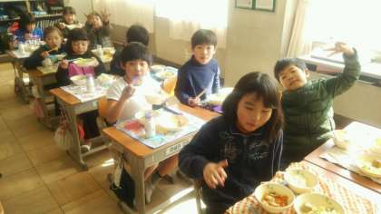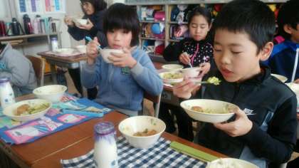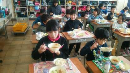 3年生の給食におじゃましました。みんな楽しそうに食べています。