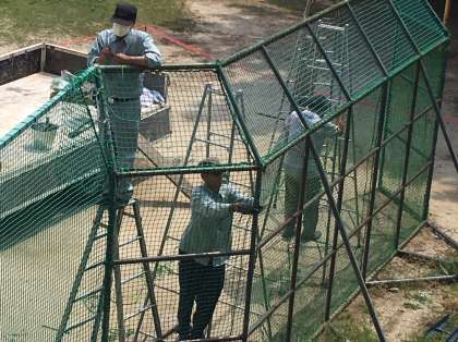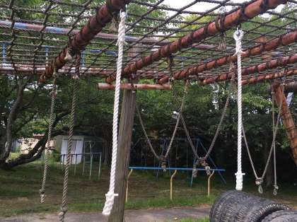 朝から業者の方に遊具の修繕をしてもらいました。バックネット、ターザンロープ、スパイダーネットを直してくれました。安全に楽しく遊べるようにしたいです。